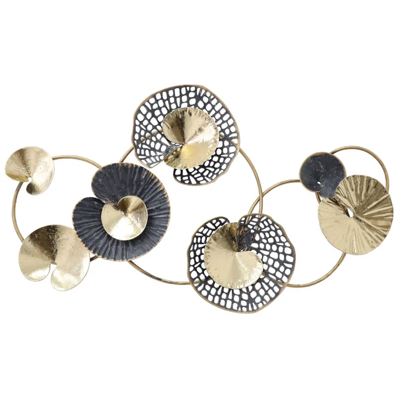 ΔΙΑΚΟΣΜΗΤΙΚΟ ΜΕΤΑΛΛΙΚO TOIXOY - ΧΡΩΜΑ: ΧΡΥΣΟ/ΜΑΥΡΟ - ΣΧΕΔΙΟ: ΣΤΕΦΑΝΙΑ-ΝΟΥΦΑΡΑ - ΚΙΒ: 4 ΔΙΑΣΤΑΣΕΙΣ / DIMΕNSIONS: 55.2x32.4x5.1cm METAL WALL DECORATIVE - COLOR: GOLD/BLACK - DESIGN: WREATHS-WATER LILIES - BOX: 4
