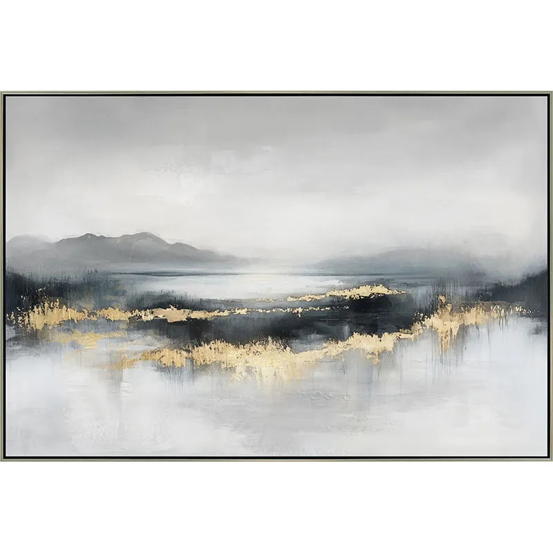ΠΙΝΑΚΑΣ ΚΑΜΒΑΣ ΑΣΠΡΟΜΑΥΡΟ/ΧΡΥΣΟ ΛΙΜΝΗ & ΒΟΥΝΑ ΣΕ ΚΟΡΝΙΖΑ - 122.5x82.5x3.5cm 6/KIB
