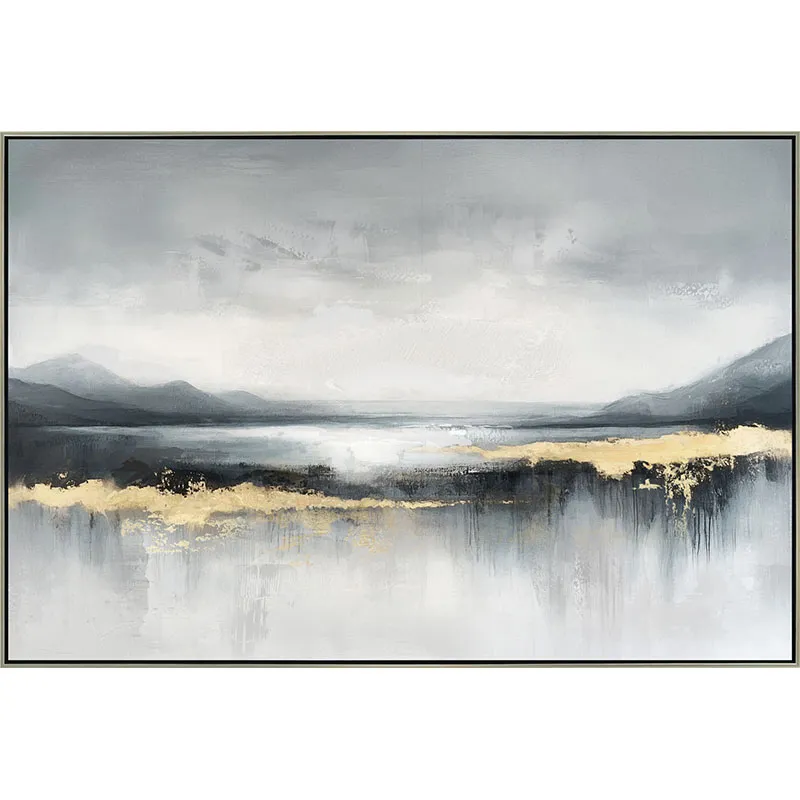 ΠΙΝΑΚΑΣ ΚΑΜΒΑΣ ΑΣΠΡΟΜΑΥΡΟ/ΧΡΥΣΟ ΛΙΜΝΗ & ΒΟΥΝΑ ΣΕ ΚΟΡΝΙΖΑ - 122.5x82.5x3.5cm 6/KIB