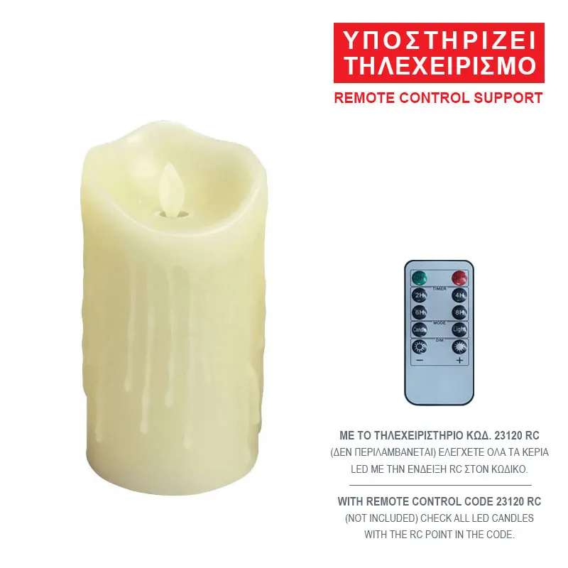 ΚΙΝΟΥΜΕΝΗ ΦΛΟΓΑ / MOVING FLAME ΚΕΡΙ LED ΕΚΡΟΥ ΜΕ ΣΤΑΛΕΣ & ΕΠΙΚΑΛΥΨΗ ΚΕΡΙΟΥ, ΤΗΛΕΧΕΙΡΙΣΜΟΣ - ΜΠΑΤΑΡΙΕΣ: 2x ΑΑ (500+ΩΡΕΣ ΜΕ ΑΛΚΑΛΙΚΕΣ - ΔΕΝ ΠΕΡΙΛΑΜΒΑΝΟΝΤΑΙ) - ΔΙΑΣΤ: Φ7.5x15cm - ΚΙΒ: 60 CREAM LED CANDLE WITH SPARKLES & WAX COATING, REMOTE CONTROL - BATTERIES: 2x ΑΑ (500+HOURS WITH ALKALINE - NOT INCLUDED) - DIM: Φ7.5x15cm - BOX: 60