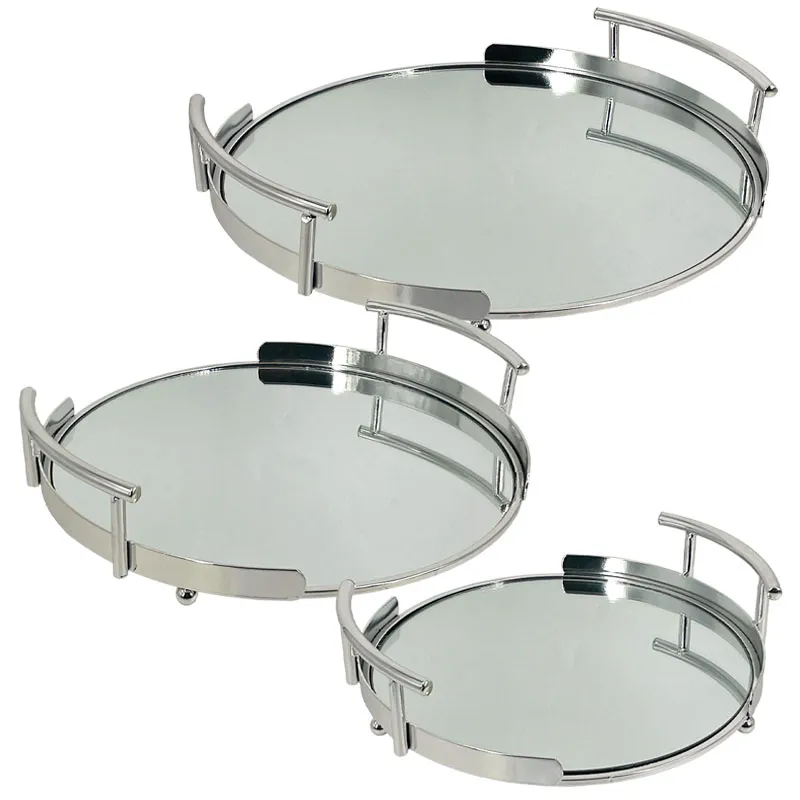 ΔΙΑΚΟΣΜΗΤΙΚΟΙ ΔΙΣΚΟΙ ΣΕΤ/3 ΜΕ ΧΕΡΟΥΛΙΑ - ΧΡΩΜΑ: ΑΣΗΜΙ - ΥΛΙΚΑ: ΜΕΤΑΛΛΟ, ΚΑΘΡΕΦΤΗΣ - ΣΧΕΔΙΟ: ΣΤΡΟΓΓΥΛΟ - ΚΙΒ.: 4 ΔΙΑΣΤΑΣΕΙΣ / DIMΕNSIONS: S:25, M:30, L:35cm SERVING TRAYS SET/3 WITH HANDLES - COLOR: SILVER - MATERIALS: IRON, MIRROR - DESIGN: ROUND - BOX: 4