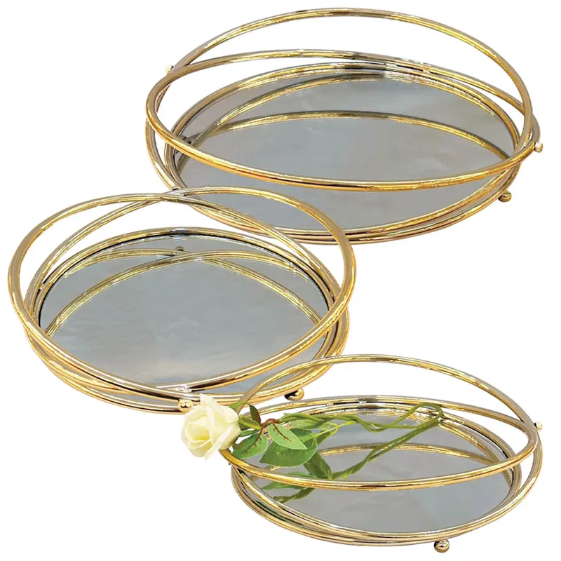 ΔΙΑΚΟΣΜΗΤΙΚΟΙ ΔΙΣΚΟΙ ΣΕΤ/3 ΜΕ ΧΕΡΟΥΛΙΑ - ΧΡΩΜΑ: ΧΡΥΣΟ - ΥΛΙΚΑ: ΜΕΤΑΛΛΟ, ΚΑΘΡΕΦΤΗΣ - ΣΧΕΔΙΟ: ΛΟΞΟΙ ΚΥΚΛΟΙ - ΚΙΒ.: 3 ΔΙΑΣΤΑΣΕΙΣ / DIMΕNSIONS: S:Φ25, M:Φ30, L:Φ35cm SERVING TRAYS SET/3 WITH HANDLES - COLOR: GOLD - MATERIALS: IRON, MIRROR - DESIGN: BENT CIRCLES - BOX: 3