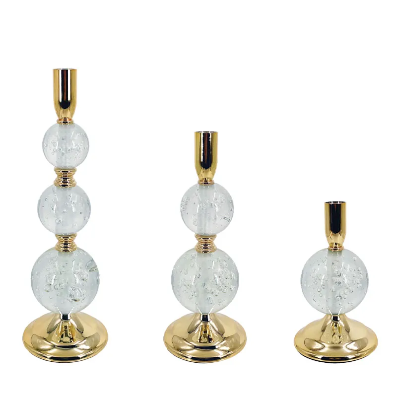 ΔΙΑΚΟΣΜΗΤΙΚA ΚΗΡΟΠΗΓΙA ΣΕΤ/3 - ΧΡΩΜΑ: ΧΡΥΣΟ/ΛΕΥΚΟ - ΥΛΙΚΑ: ΜΕΤΑΛΛΟ, ΓΥΑΛΙ - ΣΧΕΔΙΟ: ΓΥΑΛΙΝΕΣ ΣΦΑΙΡΕΣ - ΚΙΒ.: 12 ΔΙΑΣΤΑΣΕΙΣ / DIMΕNSIONS: S:Φ10x19, Μ:Φ10x26, L:Φ10x33cm DECORATIVE CANDLEHOLDERS SET/3 - COLOR: GOLD/WHITE - MATERIALS: IRON, GLASS - DESIGN: GLASS BALLS - BOX: 12