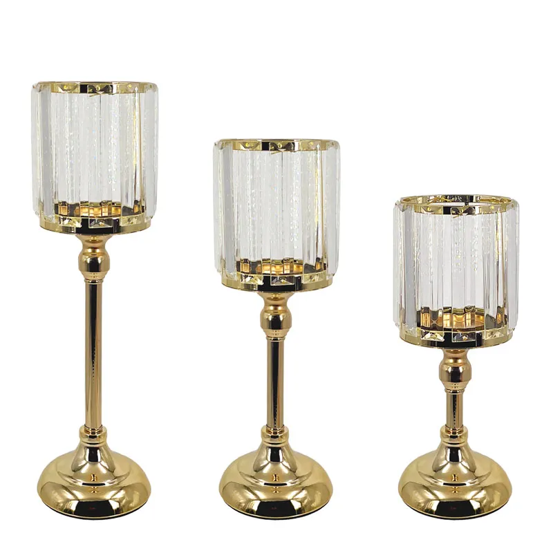 ΚΗΡΟΠΗΓΕΙΑ ΣΕΤ/3 ΜΕΤΑΛΛΙΚA ΧΡΥΣΟ/ΛΕΥΚΟ ΔΙΣΚΟΠΟΤΗΡΟ ΜΕ ΚΡΥΣΤΑΛΛΑ - S:Φ11x25, Μ:Φ11x33, L:Φ11x38cm 6/ΚΙΒ