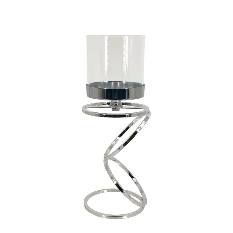 ΚΗΡΟΠΗΓΕΙO ΜΕΤΑΛΛΙΚO ΑΣΗΜΙ/ΛΕΥΚΟ ΜΕΓΑΛΟ ΜΟΝΤΕΡΝΟΙ ΚΥΚΛΟΙ ΜΕ ΓΥΑΛΙ ΜΟΝΟ - Φ12x36cm 24/ΚΙΒ