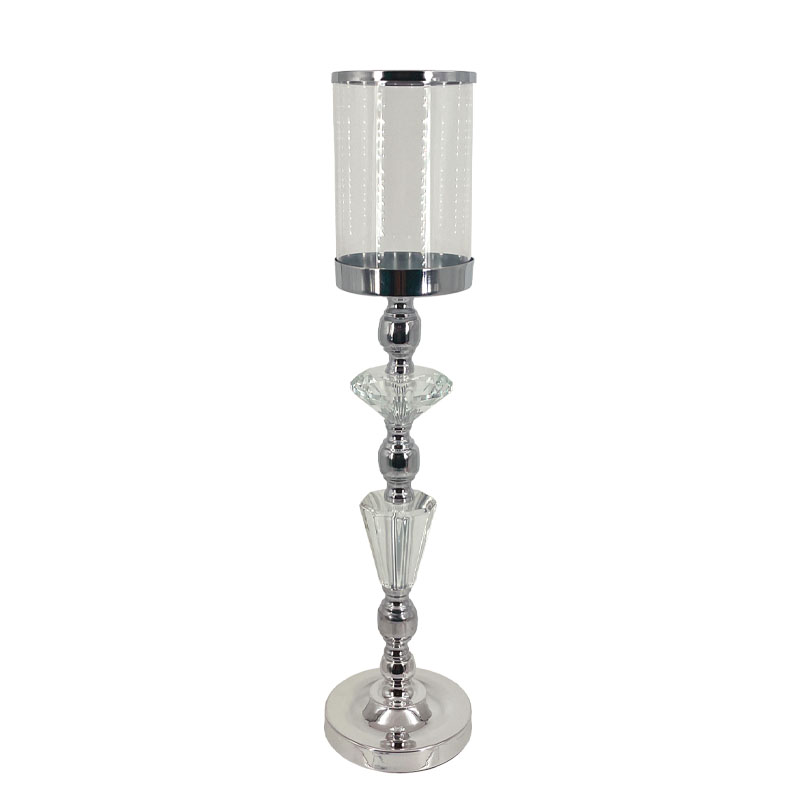 ΚΗΡΟΠΗΓΕΙO ΜΕΤΑΛΛΙΚO ΑΣΗΜΙ/ΛΕΥΚΟ ΜΟΝΟ ΚΛΑΣΙΚΟ ΜΕ ΚΡΥΣΤΑΛΛΑ & ΓΥΑΛΙ ΜΕΓΑΛΟ - Φ12x50cm 12/ΚΙΒ