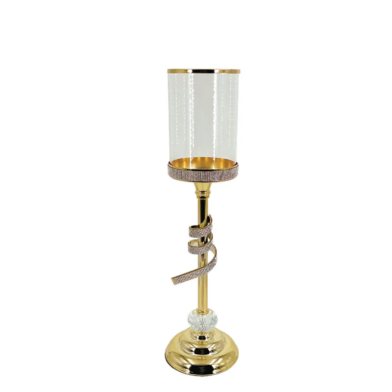 ΔΙΑΚΟΣΜΗΤΙΚΟ ΚΗΡΟΠΗΓΙΟ ΜΟΝΟ - ΧΡΩΜΑ: ΧΡΥΣΟ/ΛΕΥΚΟ - ΥΛΙΚΑ: ΜΕΤΑΛΛΟ, ΓΥΑΛΙ, ΣΤΡΑΣΣ - ΣΧΕΔΙΟ: ΣΤΡΟΓΓΥΛΟ ΚΟΡΔΕΛΑ - ΚΙΒ.: 12 ΔΙΑΣΤΑΣΕΙΣ / DIMΕNSIONS: Φ12x45cm DECORATIVE SINGLE CANDLE HOLDER - COLOR: GOLD/WHITE - MATERIALS: IRON, GLASS, STRASS - DESIGN: ROUND RIBBON - BOX: 12