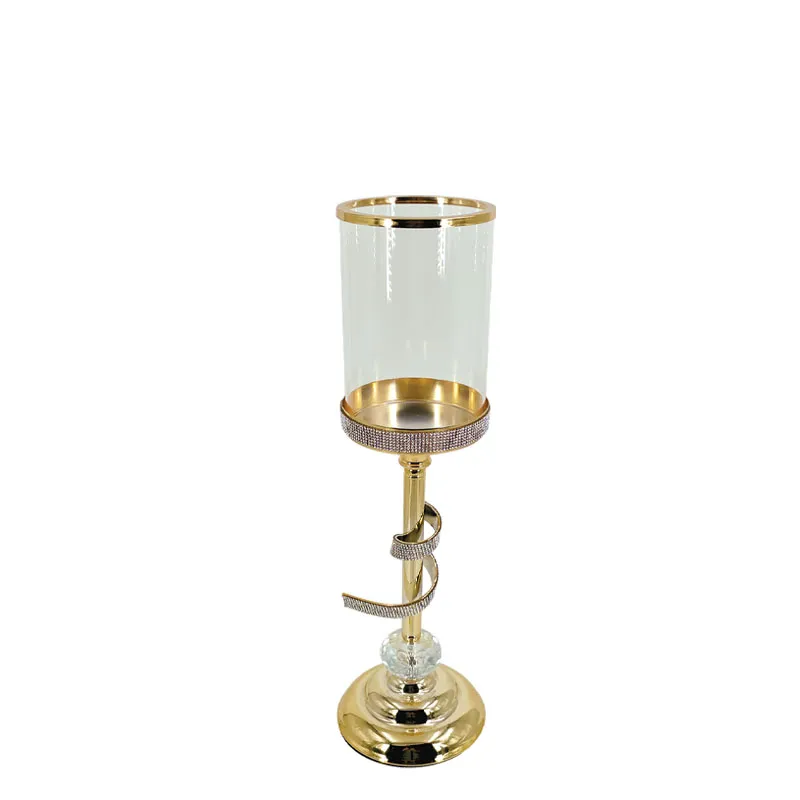 ΔΙΑΚΟΣΜΗΤΙΚΟ ΚΗΡΟΠΗΓΙΟ ΜΟΝΟ - ΧΡΩΜΑ: ΧΡΥΣΟ/ΛΕΥΚΟ - ΥΛΙΚΑ: ΜΕΤΑΛΛΟ, ΓΥΑΛΙ, ΣΤΡΑΣΣ - ΣΧΕΔΙΟ: ΣΤΡΟΓΓΥΛΟ ΚΟΡΔΕΛΑ - ΚΙΒ.: 12 ΔΙΑΣΤΑΣΕΙΣ / DIMΕNSIONS: Φ12x40cm DECORATIVE SINGLE CANDLEHOLDER - COLOR: GOLD/WHITE - MATERIALS: IRON, GLASS, STRASS - DESIGN: ROUND RIBBON - BOX: 12