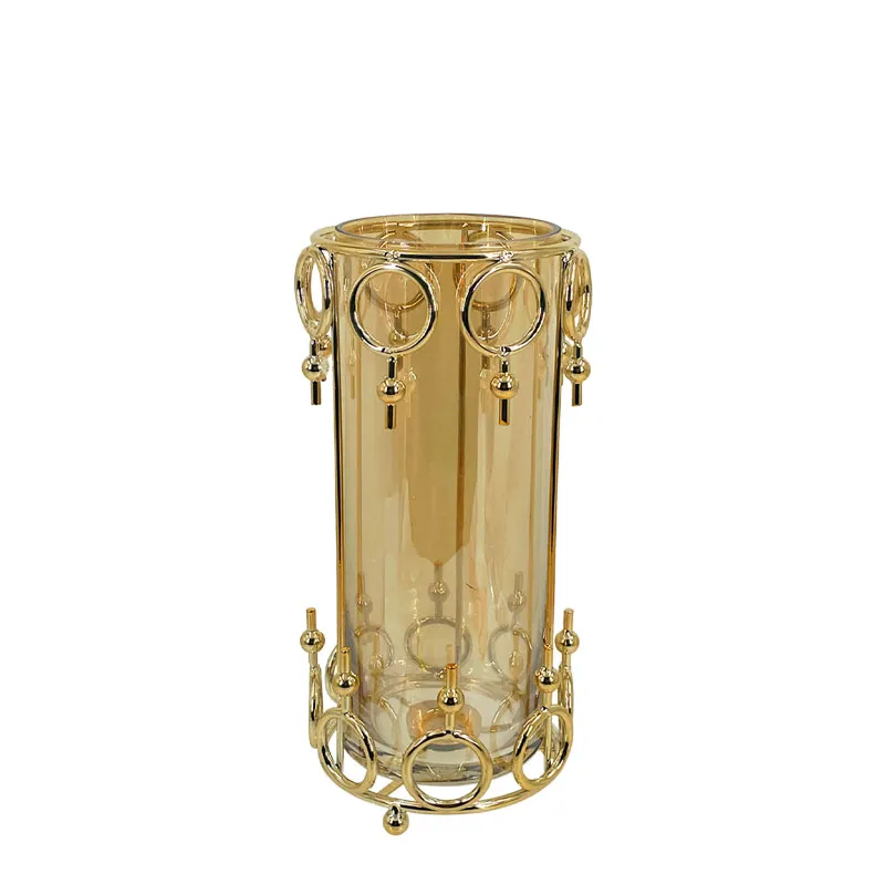 ΔΙΑΚΟΣΜΗΤΙΚΟ ΚΗΡΟΠΗΓΙΟ - ΧΡΩΜΑ: ΧΡΥΣΟ/ΜΕΛΙ - ΥΛΙΚΑ: ΜΕΤΑΛΛΟ, ΓΥΑΛΙ - ΣΧΕΔΙΟ: ΚΥΛΙΝΔΡΟΣ ΚΥΚΛΩΝ - ΚΙΒ.: 12 ΔΙΑΣΤΑΣΕΙΣ / DIMΕNSIONS: Φ12x27cm DECORATIVE CANDLEHOLDER - COLOR: GOLD/ΗΟΝΕΥ - MATERIALS: IRON, GLASS - DESIGN: CYLINDER OF CIRCLES - BOX: 12