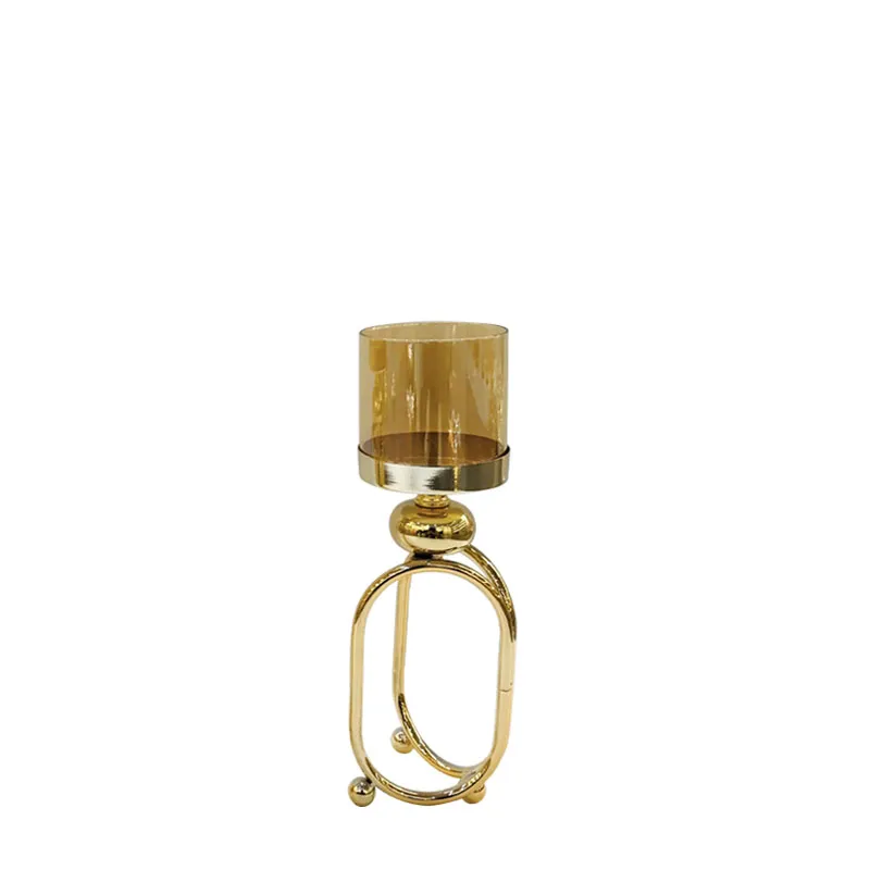ΔΙΑΚΟΣΜΗΤΙΚΟ ΚΗΡΟΠΗΓΙΟ ΜΟΝΟ - ΧΡΩΜΑ: ΧΡΥΣΟ/ΜΕΛΙ - ΥΛΙΚΑ: ΜΕΤΑΛΛΟ, ΓΥΑΛΙ - ΣΧΕΔΙΟ: ΜΟΝΤΕΡΝΟ - ΚΙΒ.: 24 ΔΙΑΣΤΑΣΕΙΣ / DIMΕNSIONS: Φ11x25cm DECORATIVE SINGLE CANDLE HOLDER - COLOR: GOLD/ΗΟΝΕΥ - MATERIALS: IRON, GLASS - DESIGN: MODERN - BOX: 24
