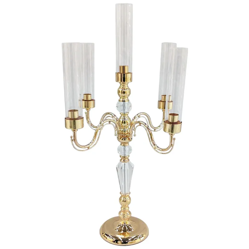 ΚΗΡΟΠΗΓΙΟ ΜΕΤΑΛΛΙΚΟ ΧΡΥΣΟ/ΛΕΥΚΟ ΚΛΑΣΙΚΟ ΣΩΛΗΝΑ ΜΕ ΚΡΥΣΤΑΛΛΑ 5 ΘΕΣΕΩΝ - Φ47x84cm 4/ΚΙΒ