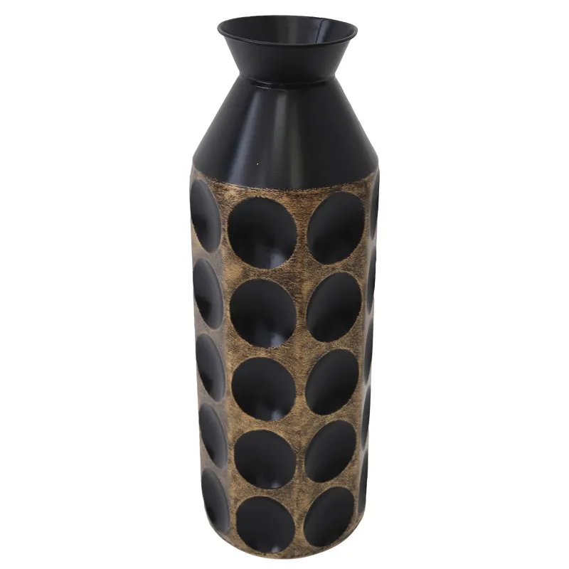 ΜΕΤΑΛΛΙΚΟ ΒΑΖΟ ΜΑΥΡΟ/ΧΡΥΣΟ ΚΥΚΛΟΙ - Φ19.7x61.6cm 4/KIB