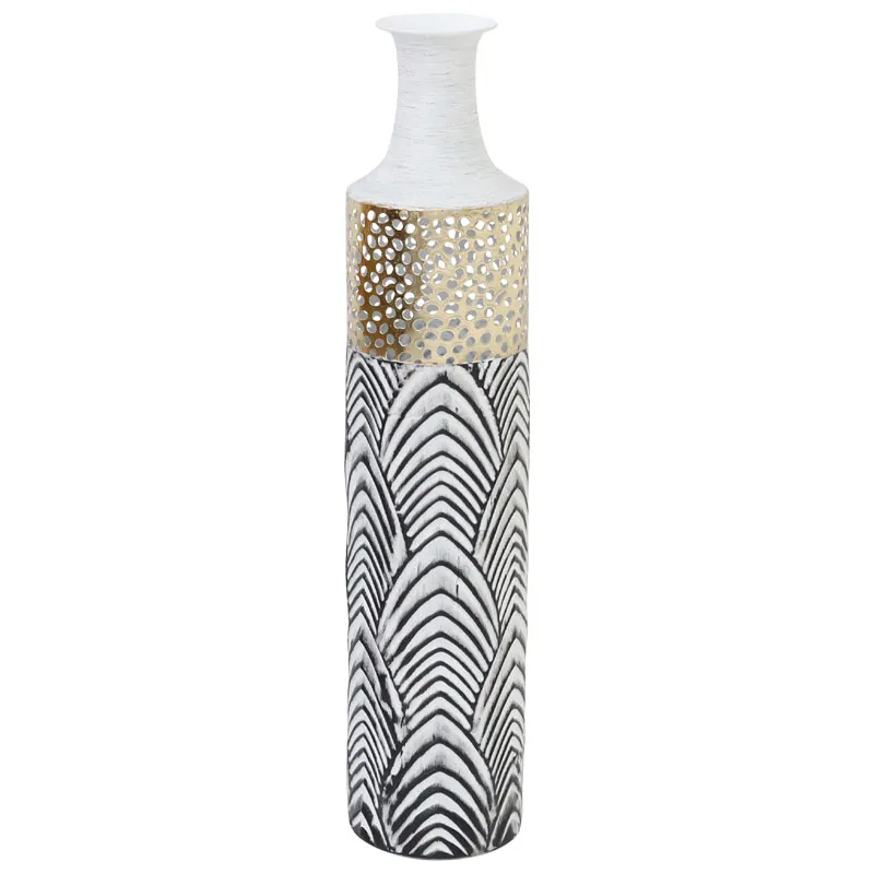 ΔΙΑΚΟΣΜΗΤΙΚO ΜΕΤΑΛΛΙΚΟ ΒΑΖΟ - ΧΡΩΜΑ: ΧΡΥΣΟ/ΜΑΥΡΟ/ΛΕΥΚΟ - ΣΧΕΔΙΟ: ΜΠΟΥΚΑΛΙ ΔΙΑΤΡΗΤΗ ΖΩΝΗ - ΚΙΒ: 4 ΔΙΑΣΤΑΣΕΙΣ / DIMΕNSIONS: Φ12.4x63.5cm DECORATIVE METAL VASE - COLOR: GOLD/BLACK/WHITE - DESIGN: BOTTLE PERFORATED BELT - BOX: 4