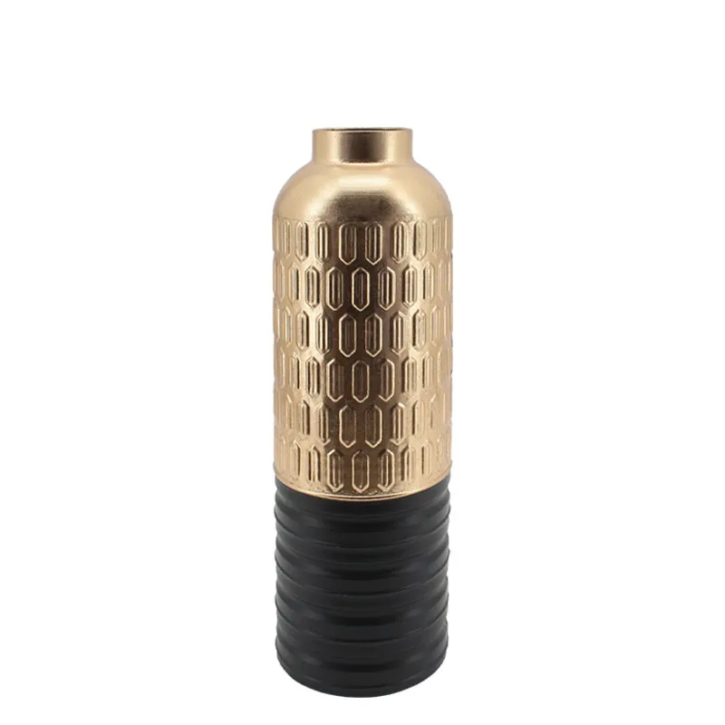 ΜΕΤΑΛΛΙΚΟ ΒΑΖΟ ΧΡΥΣΟ-ΜΑΥΡΟ ΣΤΡΟΓΓΥΛΟ/ΚΥΨΕΛΗ ΚΟΝΤΟ - Φ17.5x55cm 4/KIB