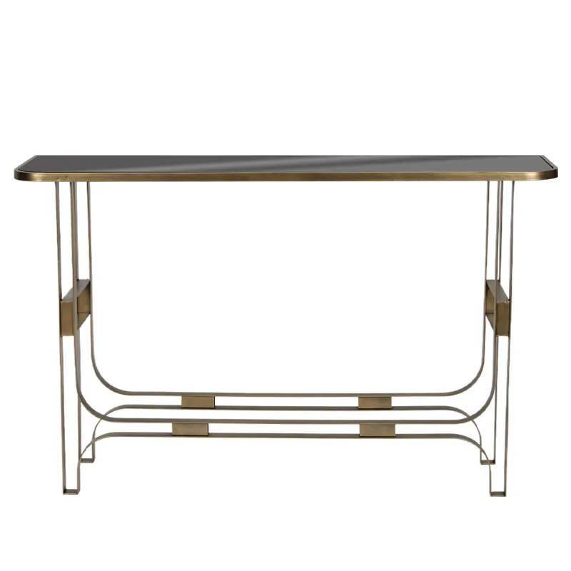 ΚΟΝΣΟΛΑ ΜΕΤΑΛΛΙΚΗ ΧΡΥΣΟ ΜΕ ΓΥΑΛΙ ΟΡΘΟΓΩΝΙΟ MODERN - 120x32x75cm 1/KIB