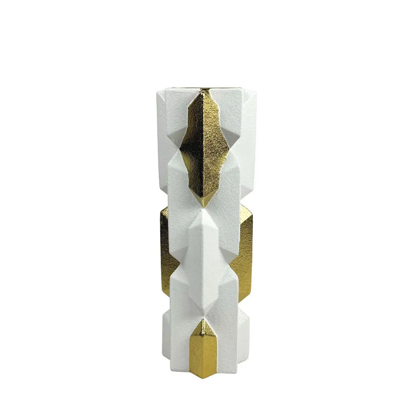 ΚΕΡΑΜΙΚΟ ΒΑΖΟ ΛΕΥΚΟ/ΧΡΥΣΟ ΤΕΤΡΑΓΩΝΑ ΧΙΑΣΤI LARGE - 36.8cm 9/ΚΙΒ