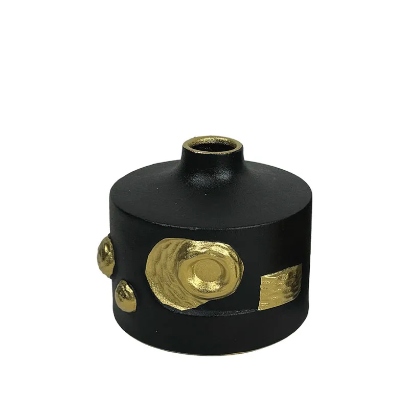 ΒΑΖΟ ΚΟΝΤΟ ME ΠΡΟΣΘΕΤΑ ΧΡΥΣΑ ΚΟΜΜΑΤΙΑ - ΧΡΩΜΑ: ΜΑΥΡΟ/ΧΡΥΣΟ - ΥΛΙΚΟ: ΚΕΡΑΜΙΚΟ - ΚΙΒΩΤΙΟ: 12 ΔΙΑΣΤΑΣΕΙΣ / DIMΕNSIONS: 16.5cm SHORT VASE WITH ADDITIONAL GOLD PIECES - COLOR: BLACK/GOLD - MATERIAL: CERAMIC - ΒΟΧ: 12