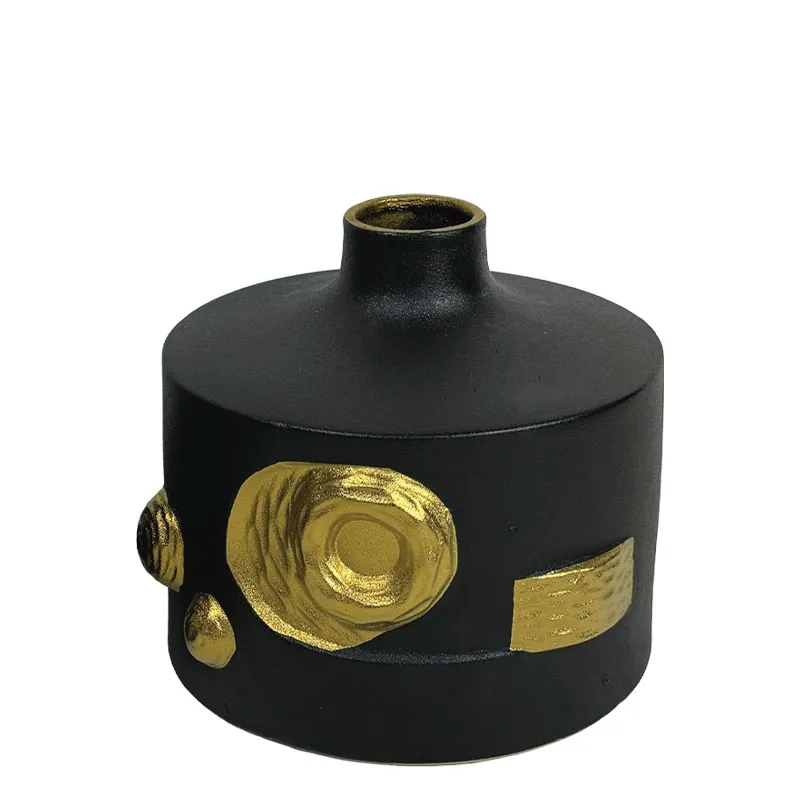 ΒΑΖΟ ΚΟΝΤΟ ME ΠΡΟΣΘΕΤΑ ΧΡΥΣΑ ΚΟΜΜΑΤΙΑ - ΧΡΩΜΑ: ΜΑΥΡΟ/ΧΡΥΣΟ - ΥΛΙΚΟ: ΚΕΡΑΜΙΚΟ - ΚΙΒΩΤΙΟ: 8 ΔΙΑΣΤΑΣΕΙΣ / DIMΕNSIONS: 21.6cm SHORT VASE WITH ADDITIONAL GOLD PIECES - COLOR: BLACK/GOLD - MATERIAL: CERAMIC - ΒΟΧ: 8