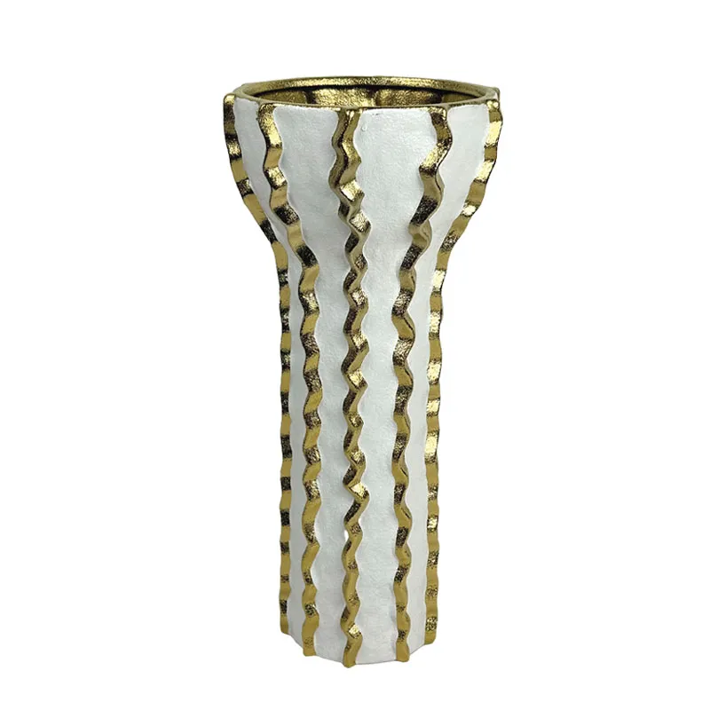 ΔΙΑΚΟΣΜΗΤΙΚΟ ΚΟΥΠ ΧΡΥΣΕΣ ΚΑΘΕΤΕΣ ΖΙΚΖΑΚ ΡΑΒΔΩΣΕΙΣ - ΧΡΩΜΑ: ΛΕΥΚΟ/ΧΡΥΣΟ - ΥΛΙΚΟ: ΚΕΡΑΜΙΚΟ - ΚΙΒΩΤΙΟ: 4 ΔΙΑΣΤΑΣΕΙΣ / DIMΕNSIONS: 39.9cm DECORATIVE CUP GOLDEN VERTICAL ZIGZAK STRIPES - COLOR: WHITE/GOLD - MATERIAL: CERAMIC - ΒΟΧ: 4