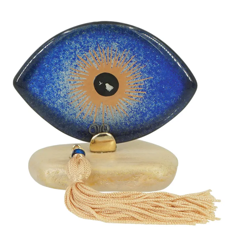 ΕΠΙΤΡΑΠΕΖΙΟ ΔΙΑΚΟΣΜΗΤΙΚΟ ΓΥΑΛΙΝΟ ΦΟΥΤΖΙ - ΘΕΜΑ: MATI - ΧΡΩΜΑ: ΤΙΡΚΟΥΑΖ, ΜΠΕΖ, ΧΡΥΣΟ, - ΥΛΙΚΑ: ΠΕΤΡΑ, ΓΥΑΛΙ ΦΟΥΤΖΙ, ΜΕΤΑΛΛO, ΦΟΥΝΤΑ - ΔΙΑΣΤΑΣΕΙΣ: 11.5x10cm TABLE DECORATIVE FUISHING ART GLASS - THEME: EYE - COLOR: TURQUOISE, BEIGE, GOLD - MATERIALS: STONE, FUISHING GLASS, METAL, TUFT - DIMENSIONS: 11.5x10cm