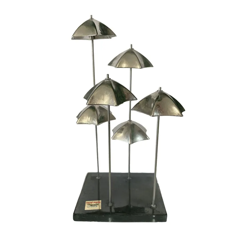 ΕΠΙΤΡΑΠΕΖΙΟ ΜΕΤΑΛΛΙΚΟ ΔΙΑΚΟΣΜΗΤΙΚΟ 6 ΑΣΗΜΙ ΟΜΠΡΕΛΕΣ ΣΕ ΓΥΑΛΙΝΗ ΒΑΣΗ - Y20cm