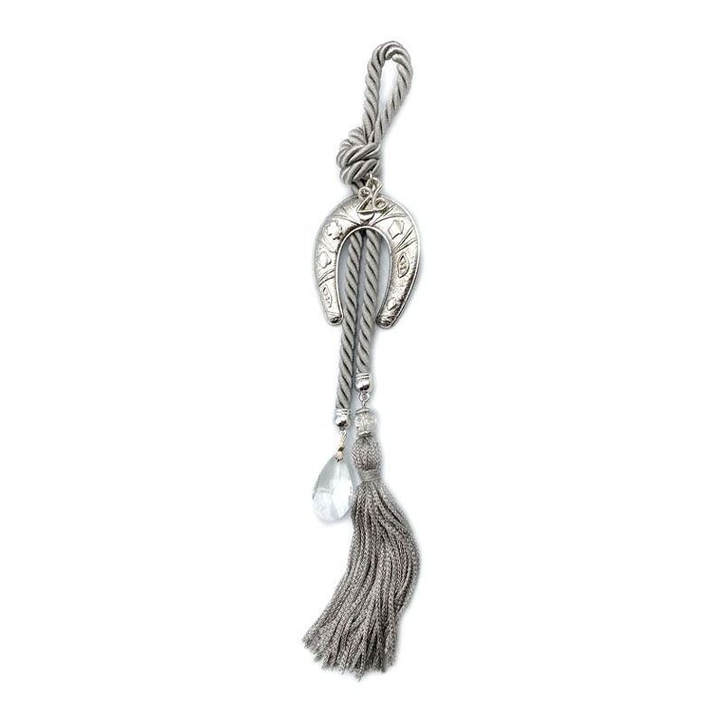 ΓΟΥΡΙ ΚΡΕΜΑΣΤΟ ΠΕΤΑΛΟ ΤΥΧΗΣ-ΚΡΥΣΤΑΛΛΟ - ΧΡΩΜΑ: ΑΣΗΜΙ, ΓΚΡΙ - ΥΛΙΚΑ: ΜΕΤΑΛΛΟ, ΚΟΡΔΟΝΙ, ΦΟΥΝΤΑ, ΓΥΑΛΙ ΔΙΑΣΤΑΣΕΙΣ / DIMΕNSIONS: Υ/Η 30cm LUCKY HORSESHOE-CRYSTAL HANGING GIFT - COLOR: SILVER, GREY - MATERIALS: IRON, CORD, TUFT, GLASS