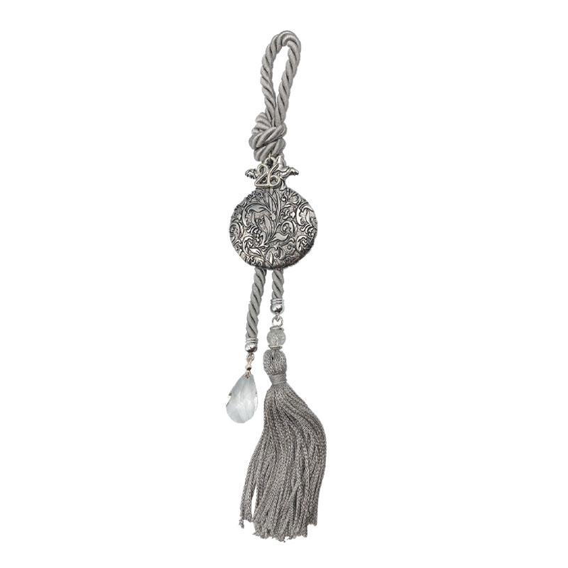 ΓΟΥΡΙ ΚΡΕΜΑΣΤΟ ΡΟΔΙ ΑΝΑΓΛΥΦΟ-ΚΡΥΣΤΑΛΛΟ - ΧΡΩΜΑ: ΑΣΗΜΙ, ΓΚΡΙ - ΥΛΙΚΑ: ΜΕΤΑΛΛΟ, ΚΟΡΔΟΝΙ, ΦΟΥΝΤΑ, ΓΥΑΛΙ ΔΙΑΣΤΑΣΕΙΣ / DIMΕNSIONS: Υ/Η 30cm POMEGRANATE EMBODIMENT-CRYSTAL HANGING GIFT - COLOR: SILVER, GREY - MATERIALS: IRON, CORD, TUFT, GLASS