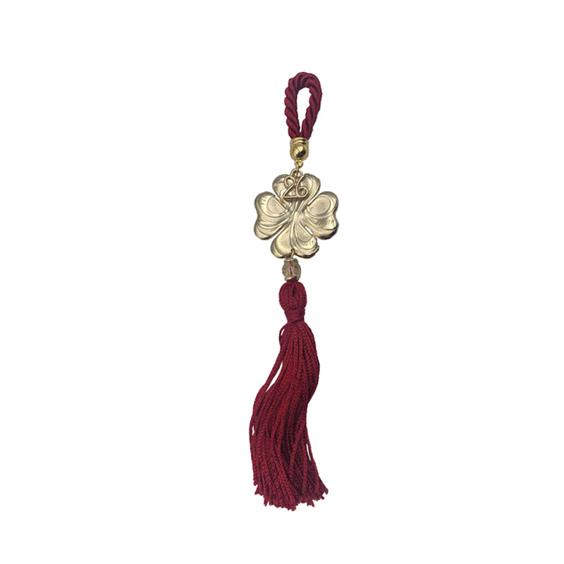 ΓΟΥΡΙ ΚΡΕΜΑΣΤΟ ΤΕΤΡΑΦΥΛΛΟ ΤΡΙΦΥΛΛΙ - ΧΡΩΜΑ: ΧΡΥΣΟ, ΜΠΟΡΝΤΩ - ΥΛΙΚΑ: ΜΕΤΑΛΛΟ, ΚΟΡΔΟΝΙ, ΦΟΥΝΤΑ ΔΙΑΣΤΑΣΕΙΣ / DIMΕNSIONS: Υ/Η 22cm FOUR-LEAF CLOVER HANGING GIFT - COLOR: GOLD, BORDEAUX - MATERIALS: IRON, CORD, TUFT